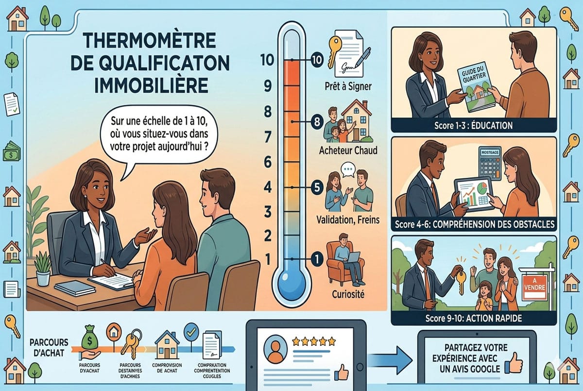 Continuamos a nossa série sobre técnicas de venda eficazes E como obter mais críticas! Episódio 2: Na profissão de agente imobiliário, o tempo é o recurso mais precioso. Cada hora passada com um "turista imobiliário" é uma hora perdida para um comprador sério. A técnica do termómetro permite-lhe identificar rapidamente em que ponto do seu percurso de compra se encontra cada potencial cliente.